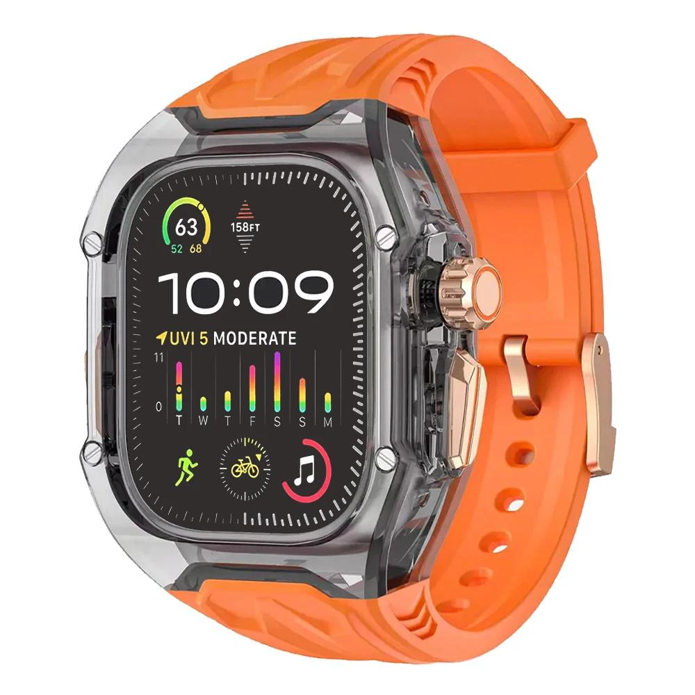 Комплект для модификации прозрачный защитный чехол + ремешок из ТПУ для Apple Watch Ultra 9 band для iWatch Series 9 8 7 6 5 4 45 мм 44 мм 49 мм