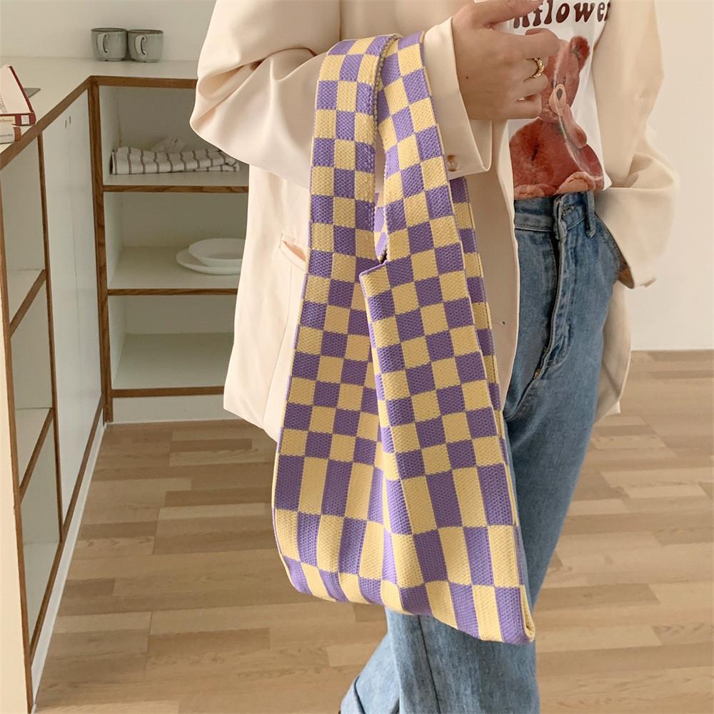 Introducing our chic and versatile Tote Bag, a perfect blend of retro European and American style that fits seamlessly into your daily wardrobe. This stunning bag comes in a variety of fashionable patterns, including classic black and white check, soft pink and green, vibrant yellow and purple, refreshing blue and green, and a rich black and coffee combination. Each colorway offers a unique flair, allowing you to express your personality while adding a touch of elegance to your ensemble.