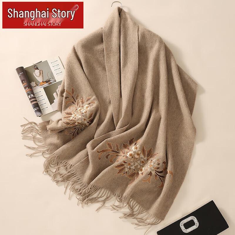 Шанхайская история 100% шерстяной вышитый платок-шаль
