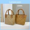 Vintage Basket Woven Bag With Grass Weaving Design For Daily Outings Handbag