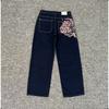 Американский Ретро Харадзюку Цветочная Вышивка Мешковатые Джинсы Мужские Уличный Стиль Модный Стритвир Y2K Повседневные Прямые Брюки