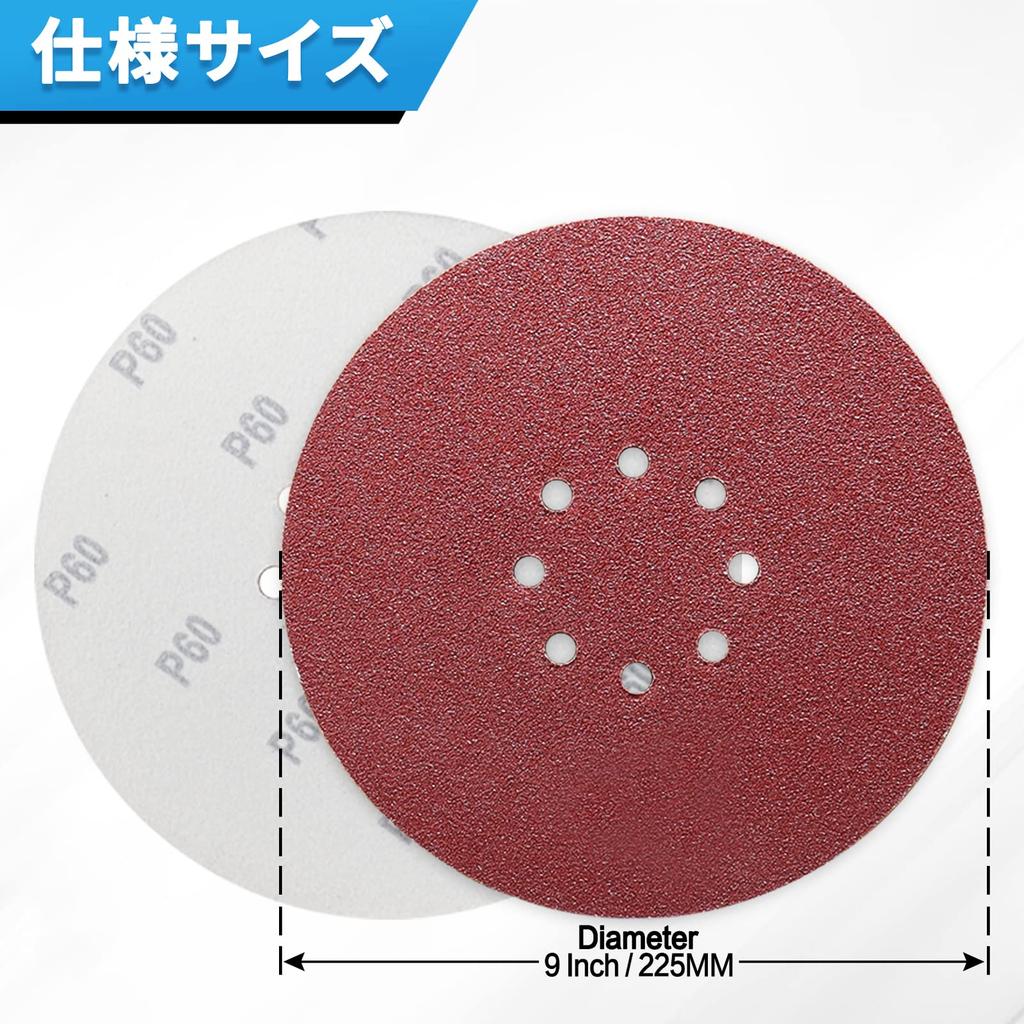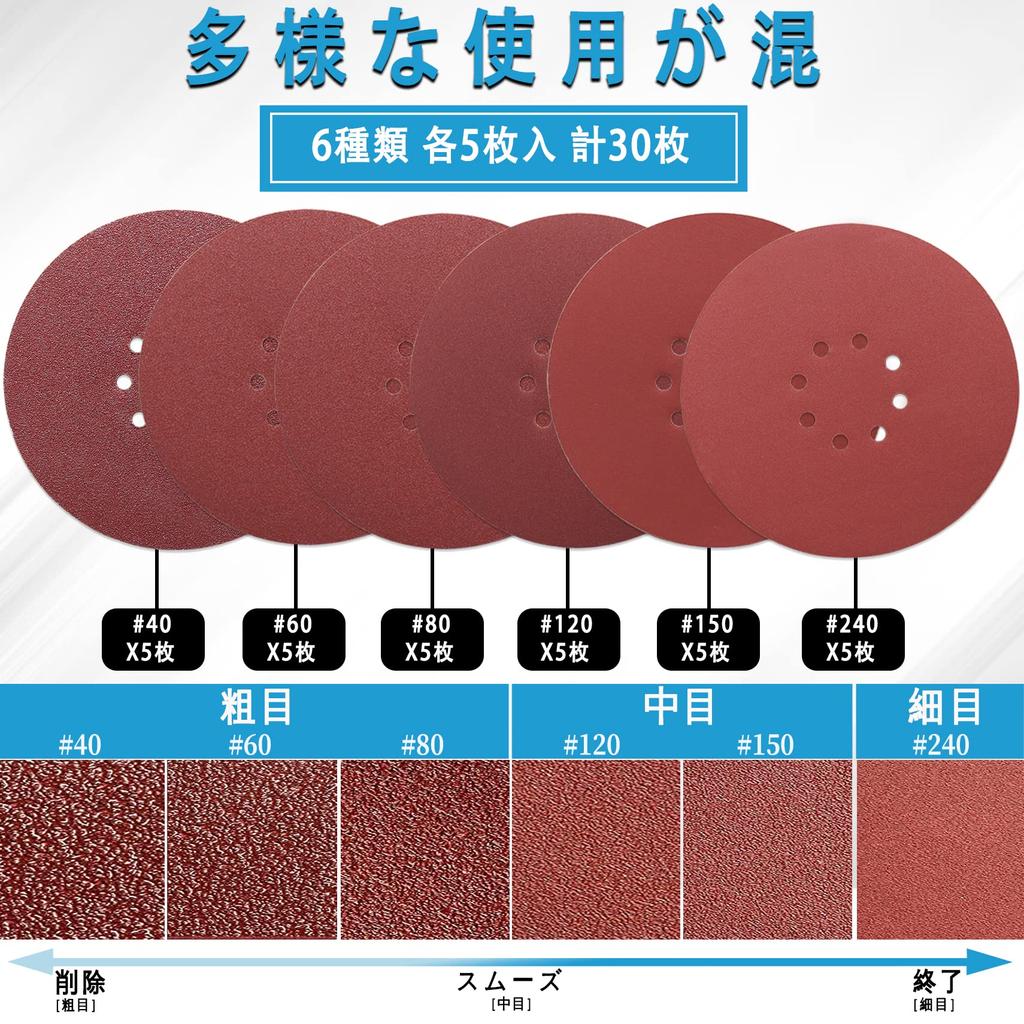 IROKCAKPT Sanding Set sheets each of and for Electric and Metal Polishing Discs, 225mm, 8-Hole, Round, 30-Piece (5 #40, #60, #80, #120, #150, #240)
