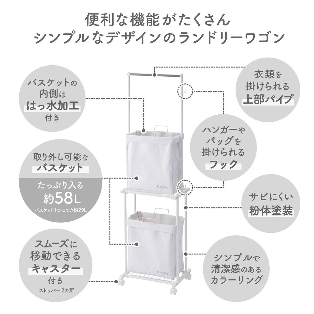 Daiya FLaundry 058162 Бельевая корзина для белья с большой складной корзиной для белья Идеально подходит для переодевания Бельевая тележка, 2-ярусная, на колесиках, узкая, Ш x Д x В,