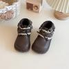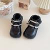 Девочки французские маленькие кожаные ботинки 2025 осень и зима детские кружевные ботинки принцессы на коротком каблуке с мягкой подошвой британские ботинки Мартин