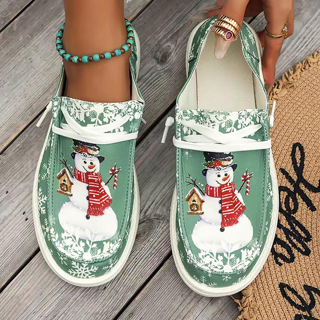 Женские повседневные балетки Весна Осень Рождество Снеговик Маленький узор Лоферы Женские Удобные Слипоны Уличная обувь для ходьбы Женская
