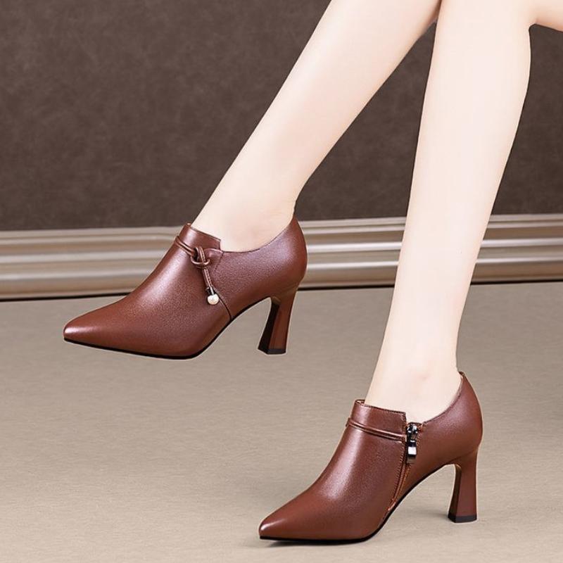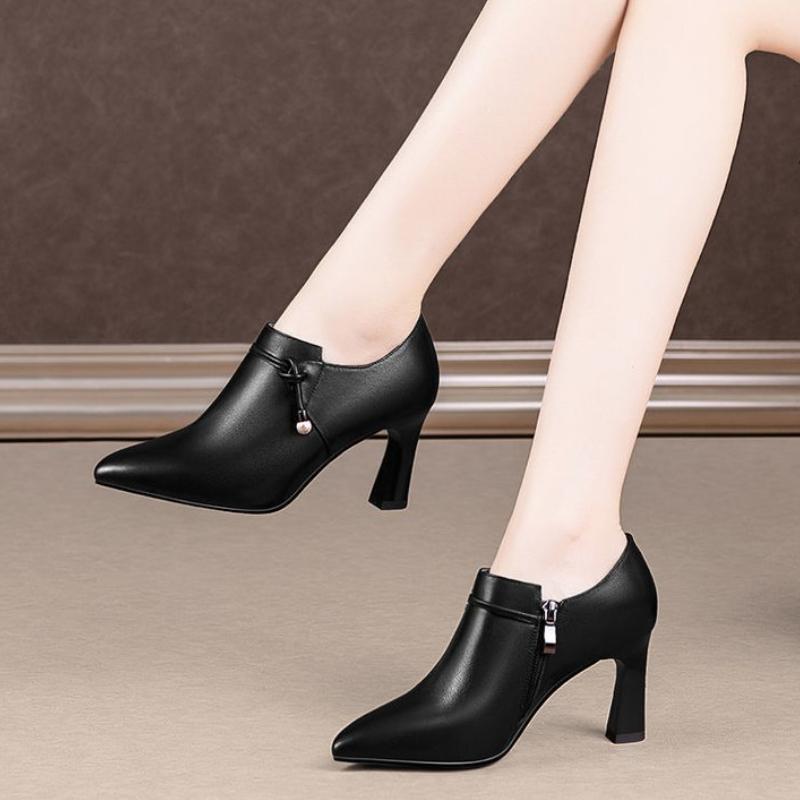 Маленькие кожаные туфли в британском стиле Новые остроносые туфли на высоком каблуке Женский весенне-осенний дизайн Ретро туфли-лодочки