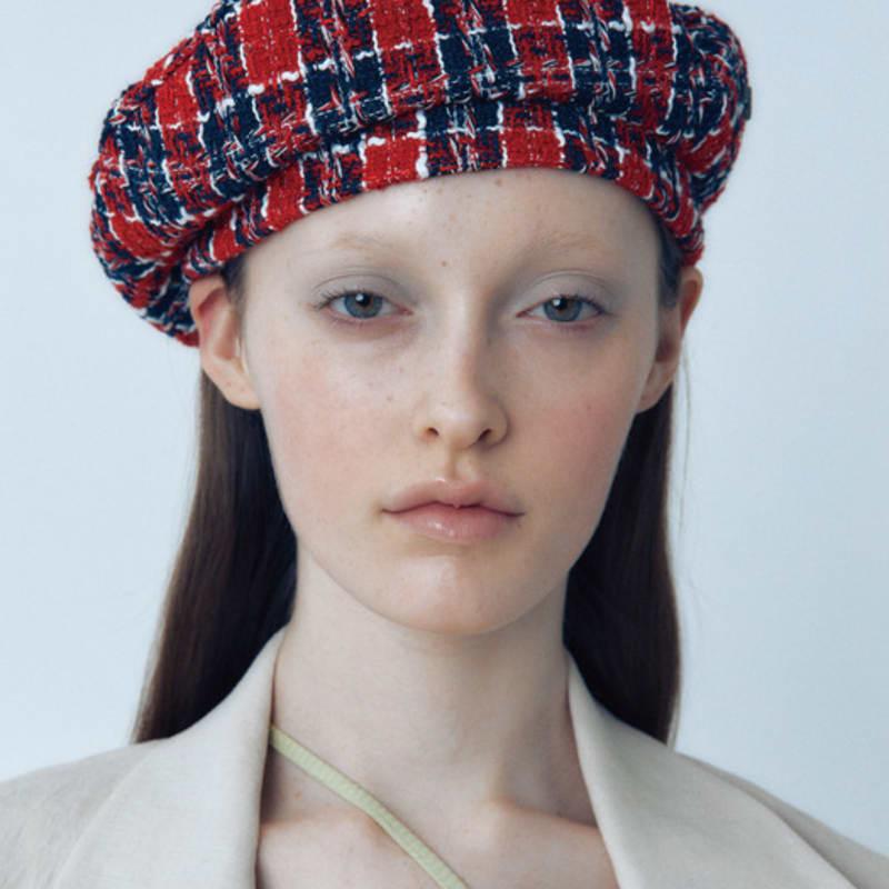 Киска леди ТВИДОВЫЙ БЕРЕТ В ТЕМНО-СИНЕМ/КРАСНОМ ЦВЕТЕ