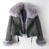 Женская джинсовая куртка светлого оттенка с воротником из лисьего меха и поясом на талии — купить товар онлайн с бесплатной доставкой по всему миру!
