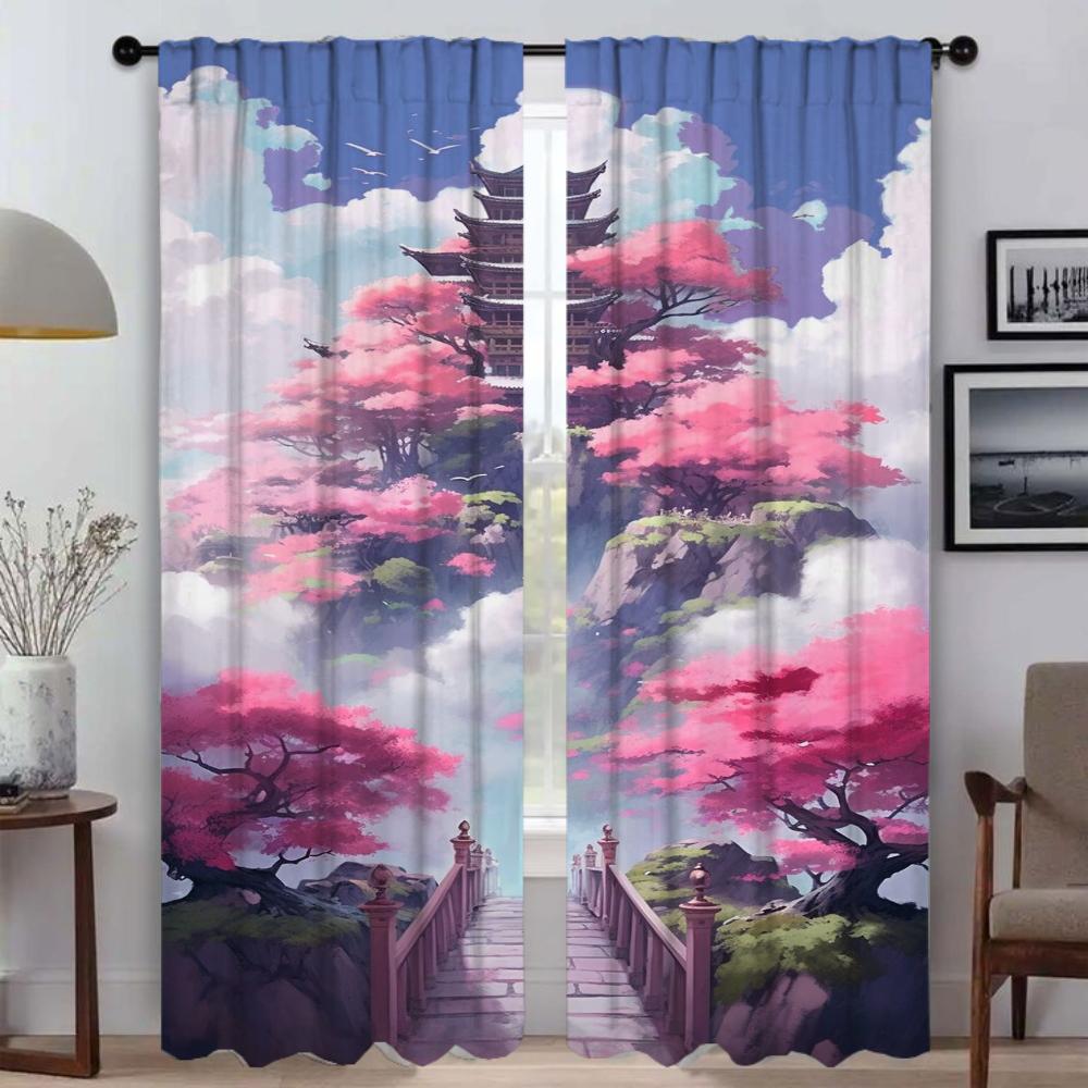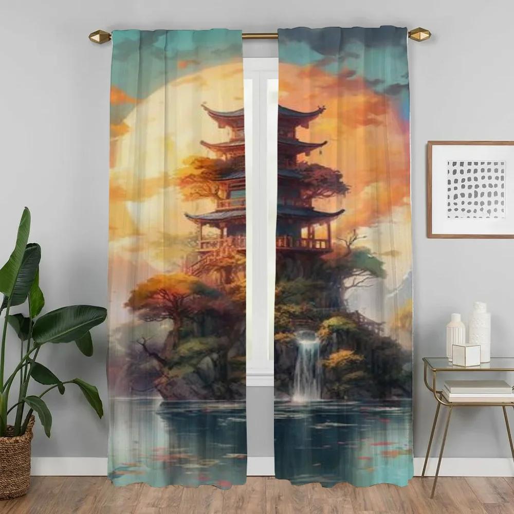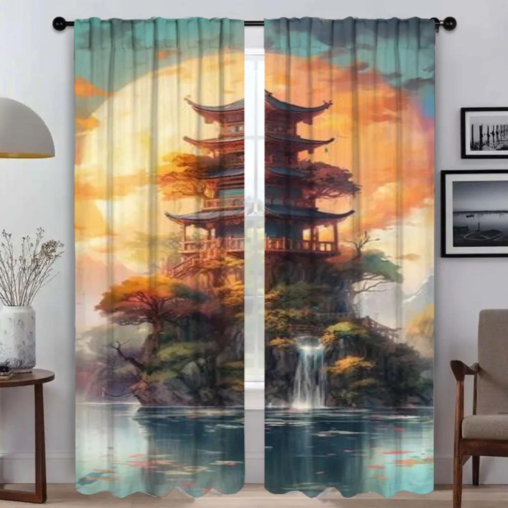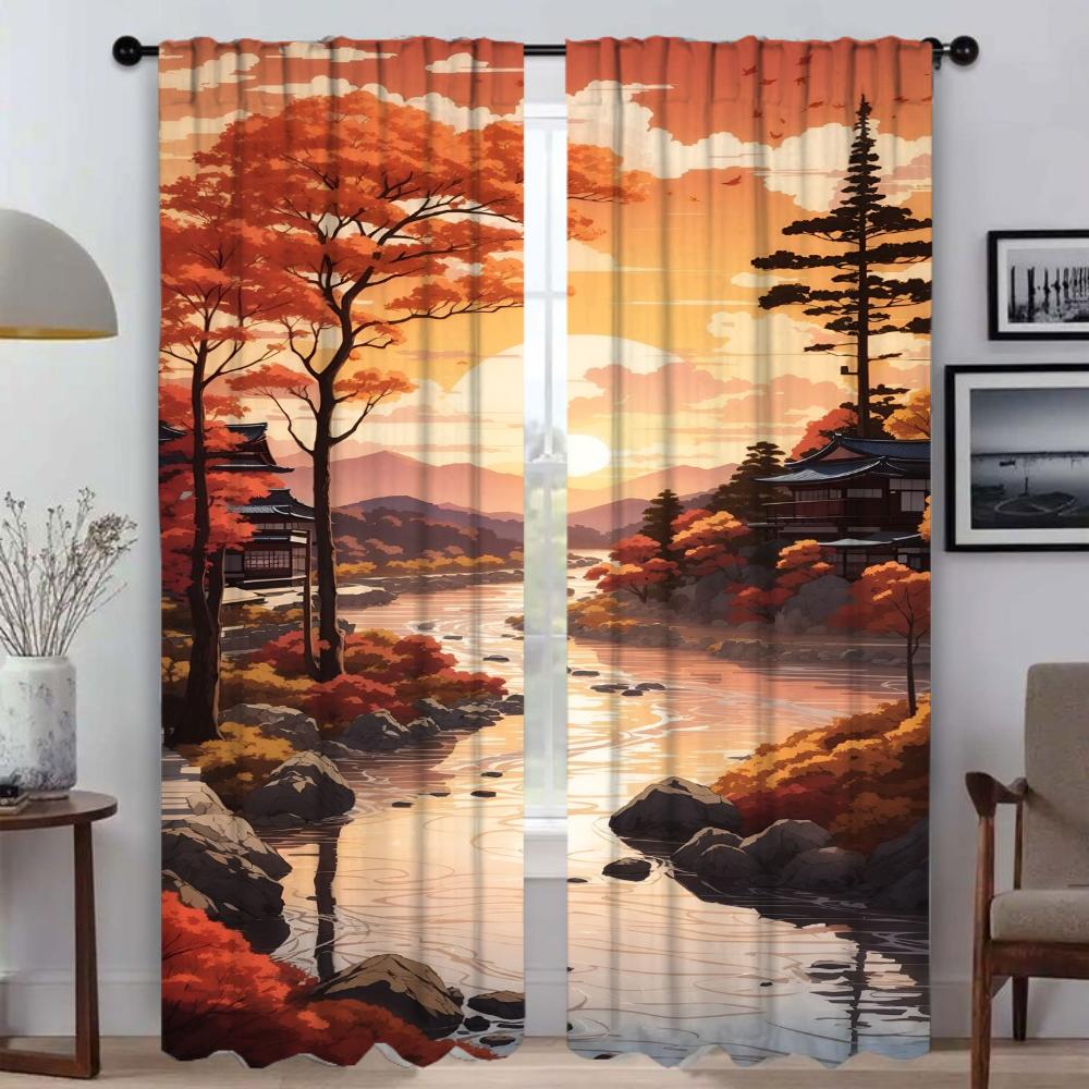 Шторы для кухни в японском стиле для гостиной, шторы, перегородки, шторы для домашнего интерьера, 2 шт., тюль для спальни, затемнение