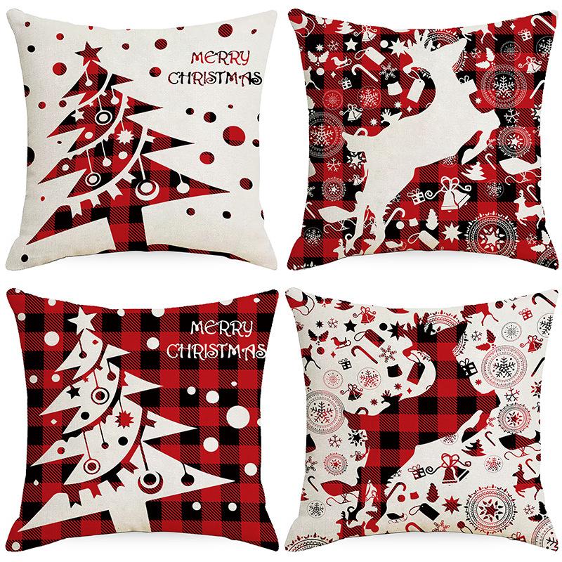 Новая рождественская льняная наволочка с клетчатым принтом, наволочка для домашней диванной подушки, автомобильной подушки