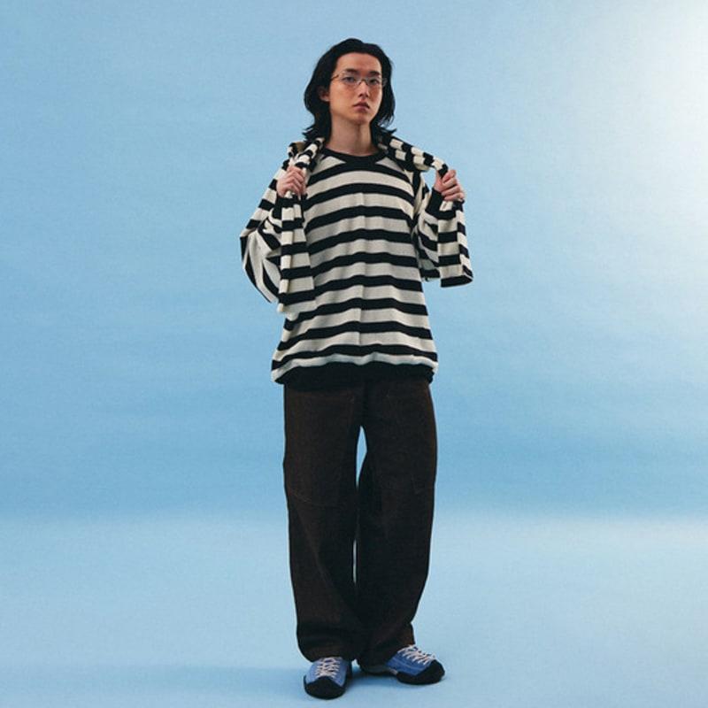 Karactor Полосатый вязаный балаклава шарф / Слоновая кость черный