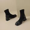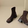 Корейская версия новых женских замшевых ботильонов на среднем каблуке большого размера, кожаные ботильоны на толстой подошве с нескользящей подошвой, ботильоны средней высоты с круглым носком, квадратный и осенний а
