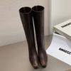 Женские кожаные ботинки на осень и зиму, однотонные, кожаные, большого размера, модные женские ботинки, универсальные, из коровьей кожи, на молнии, на среднем каблуке, с квадратным носком, высокие б
