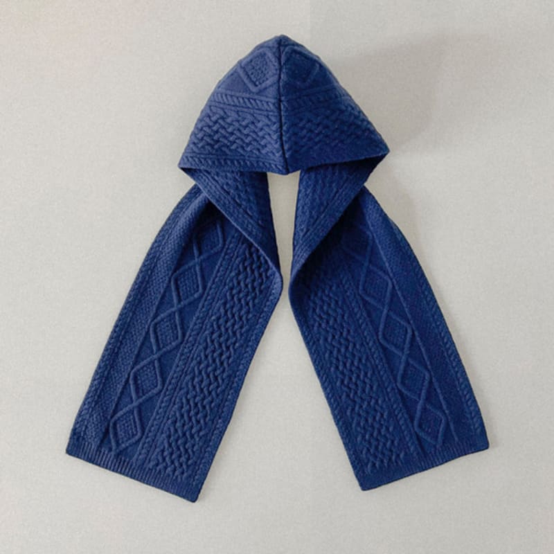 MOON J HOODED CABLE-KNIT MERINO SCARF - NAVY