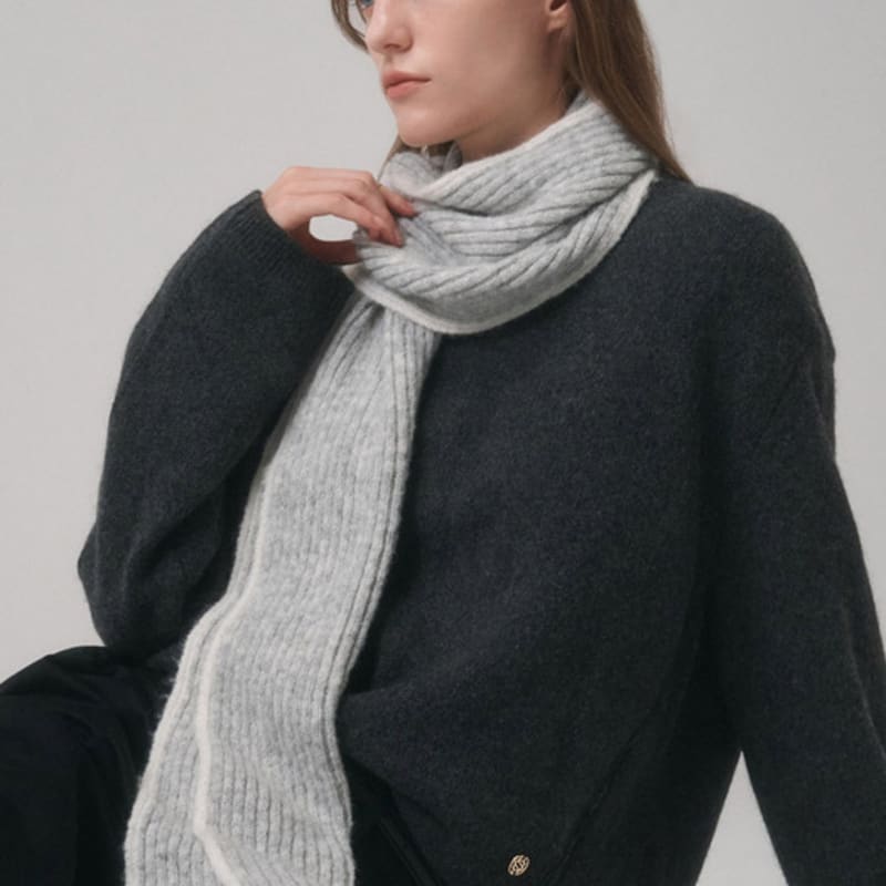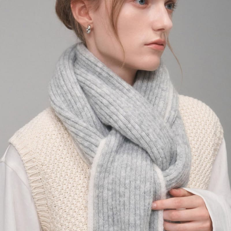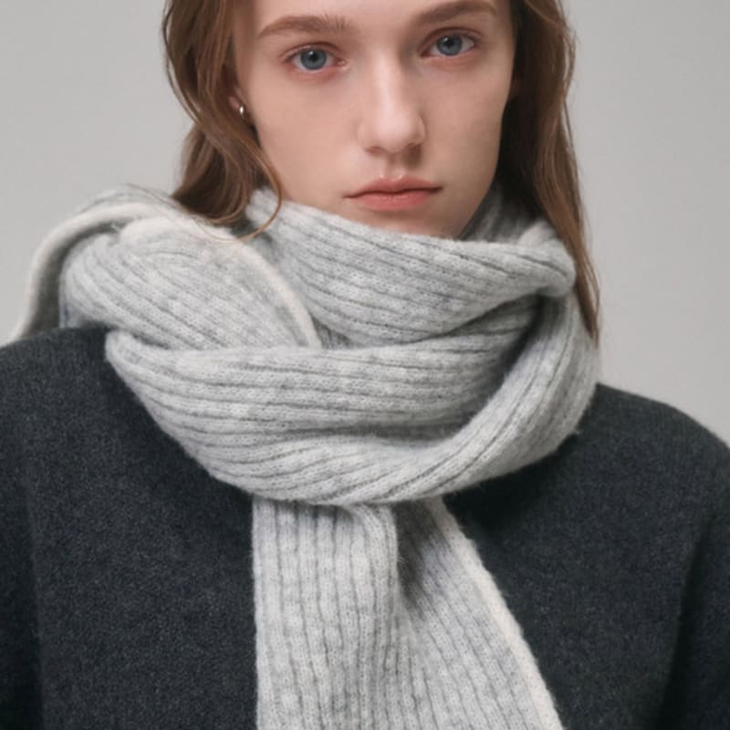 Saint Luxure Alpaca Boucle Line Muffler Light Gray