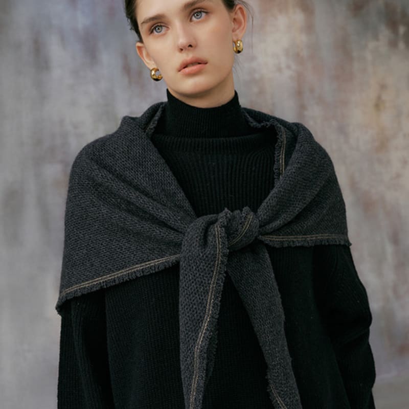 BARNEYS NEWYORK 25FW Кашемировый смешанный шарф Угольно-серый