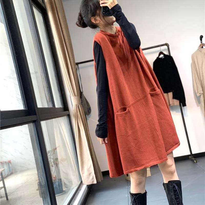 Платье для женщины Хлопок Зима Винтаж Повседневный Без рукавов Длинный жилет Вязаный жилет без рукавов Платья