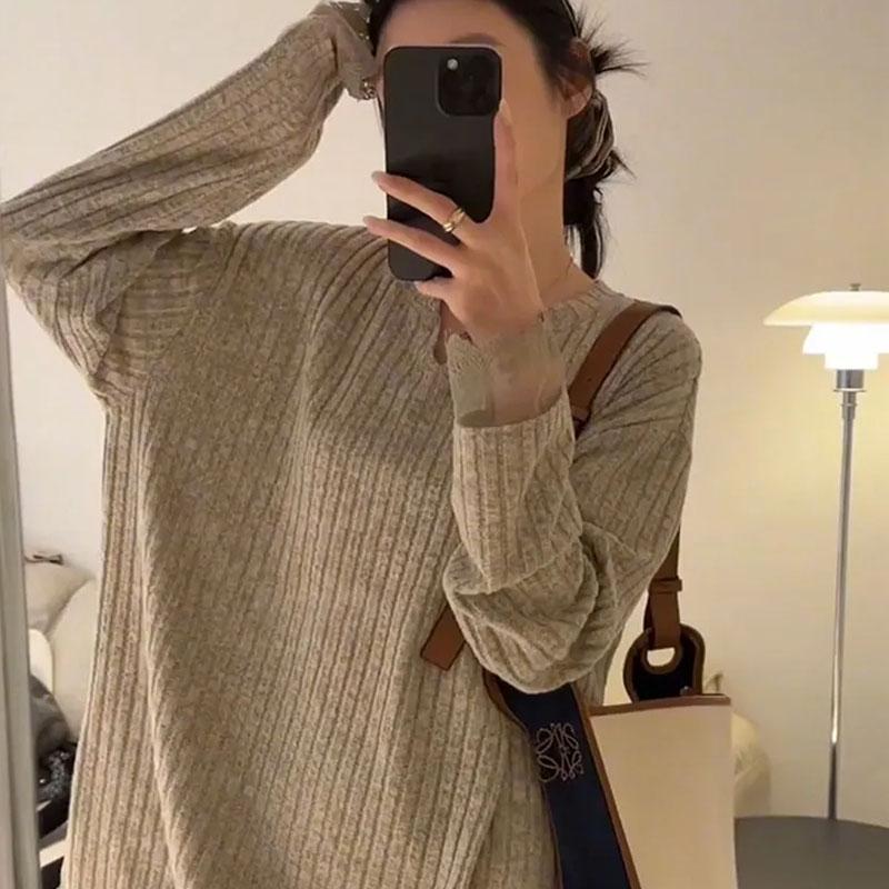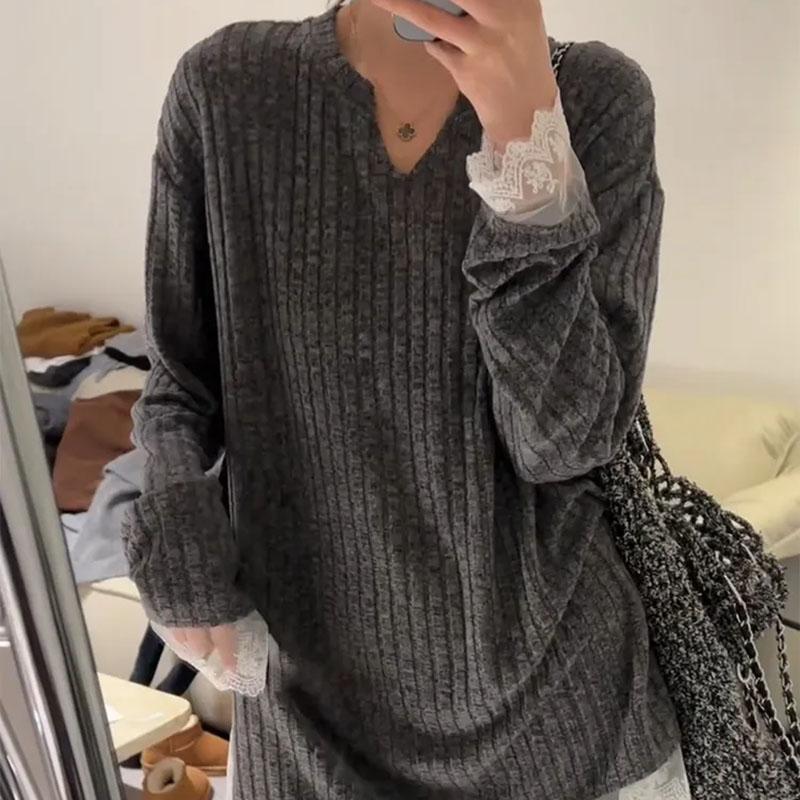 Женские пуловеры с длинными рукавами, осенне-зимняя хлопковая блузка оверсайз, удобная, эластичная, однотонная, с круглым вырезом, кружевные, свободные топы