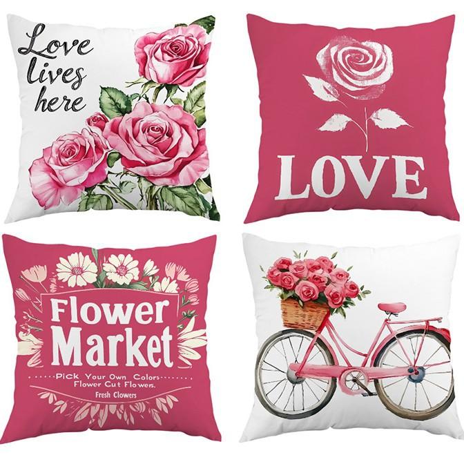 Подушка с розовым принтом на День святого Валентина, наволочка, скандинавский стиль, гостиная, диван, кровать, офис, подушка для спины, домашний декор