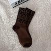 Чжицзи Осень/Зима Леопардовый принт Кофе Носки до середины икры: Трендовая и универсальная корейская мода для женщин