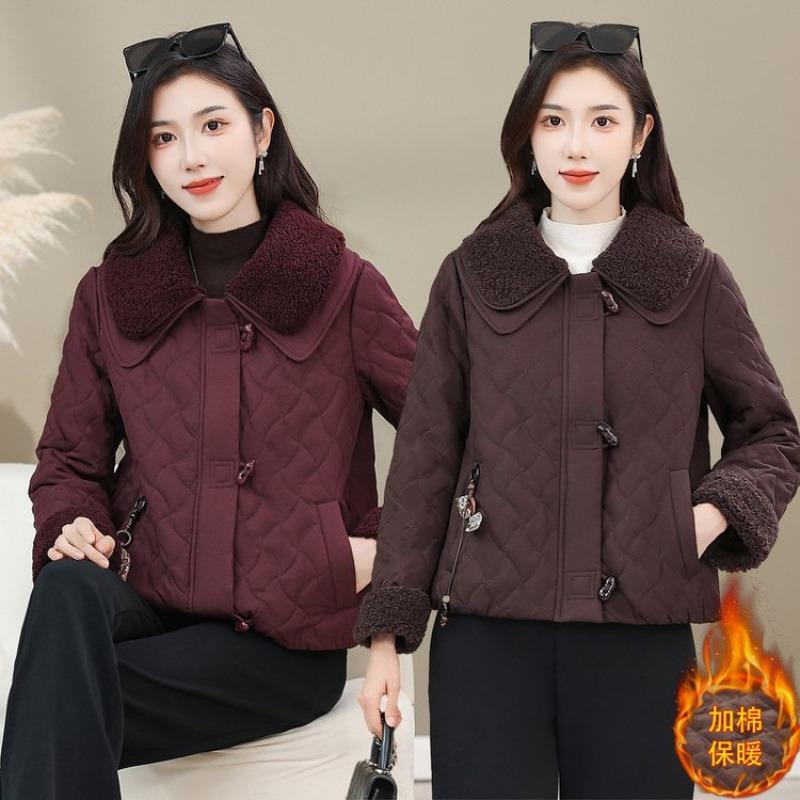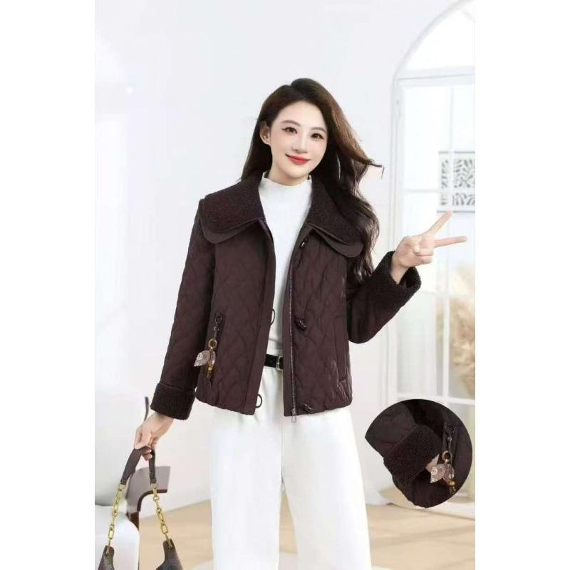 Fashion temperament New autumn and winter cotton-padded clothes Small short lapel splicing High-end outer cotton-padded clothes jacket