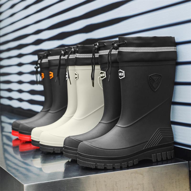 Мужские модные резиновые сапоги до середины икры, водонепроницаемые, для автомойки, рыбалки, работы, мужские резиновые галоши, боты от дождя — купить товар онлайн с бесплатной доставкой по всему миру!