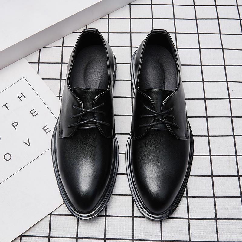 Низкие туфли джентльмена с полированной кожей, маленькие черные туфли, осенние новые повседневные туфли из кожи с острым носком, на шнуровке, трендовые повседневные мужские туфли