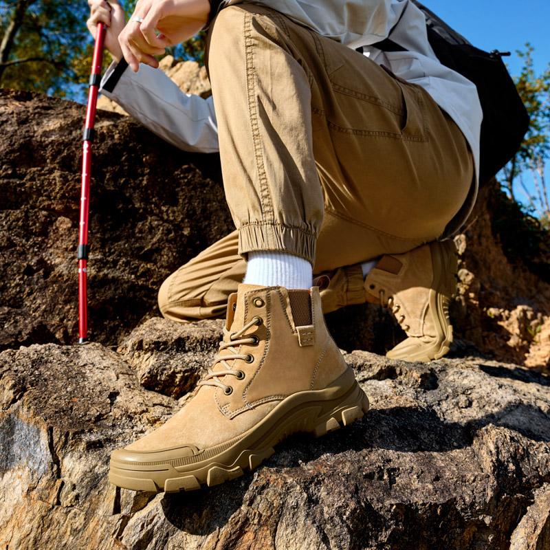 Ботинки средней высоты из кожи, Мужские ботинки, Всесезонные пустынные боевые ботинки, Уличные нескользящие походные ботинки и Зимние хлопковые сноубутсы