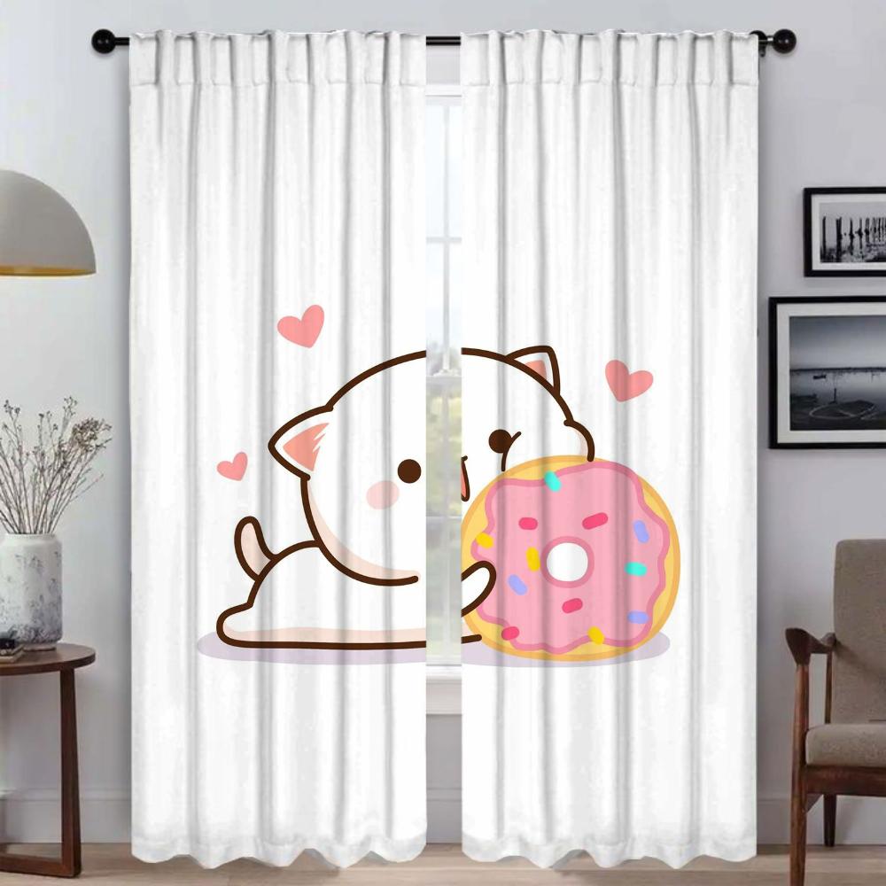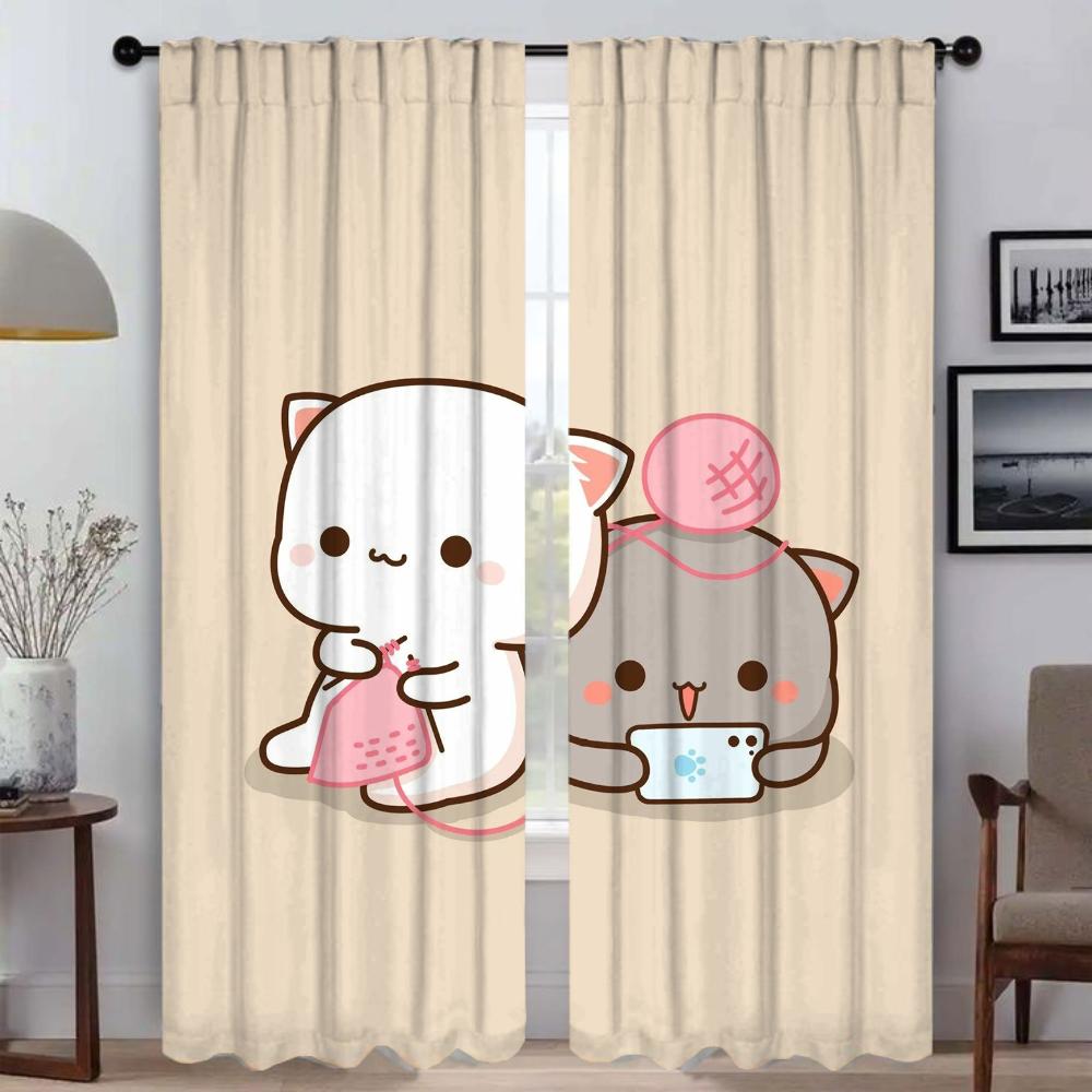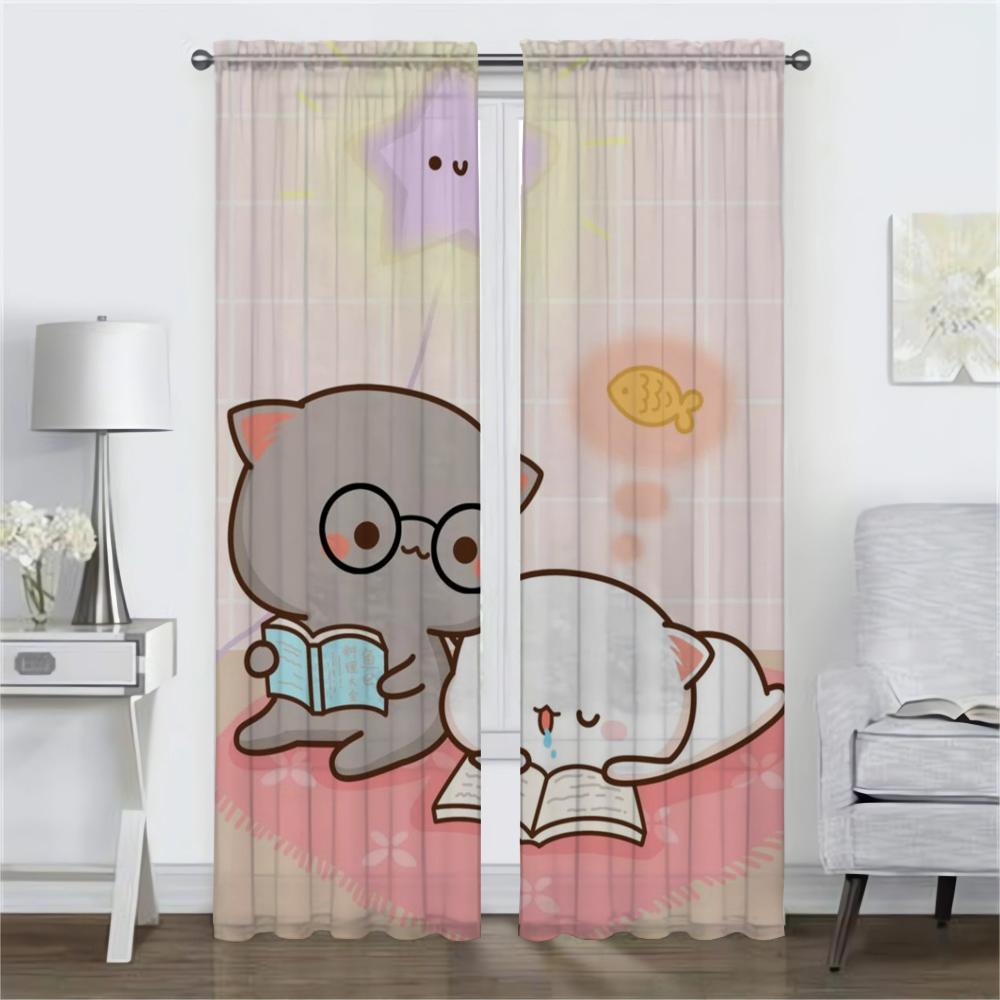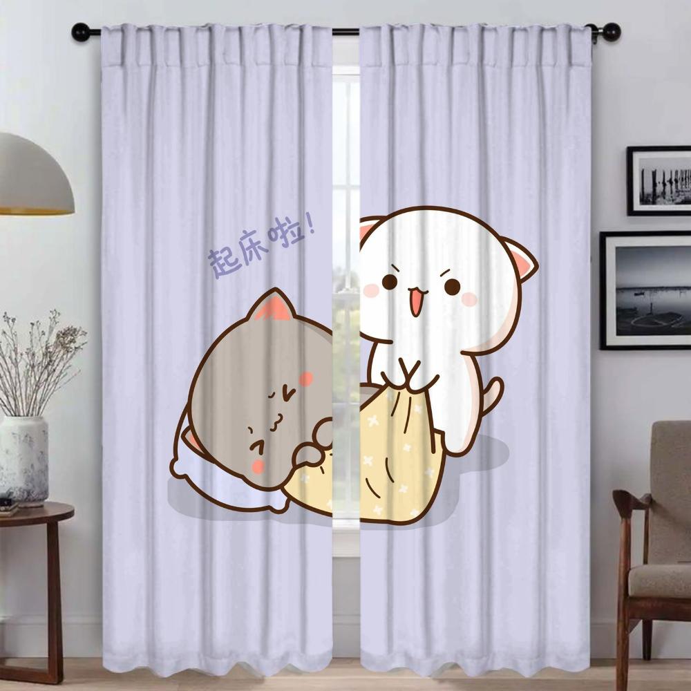 Персиковые Моти Кот Кухонные Занавески 2 Штуки Затемняющая Штора для Комнаты 2 Панели Шторы Тюль для Спальни Домашние Интерьерные Занавески