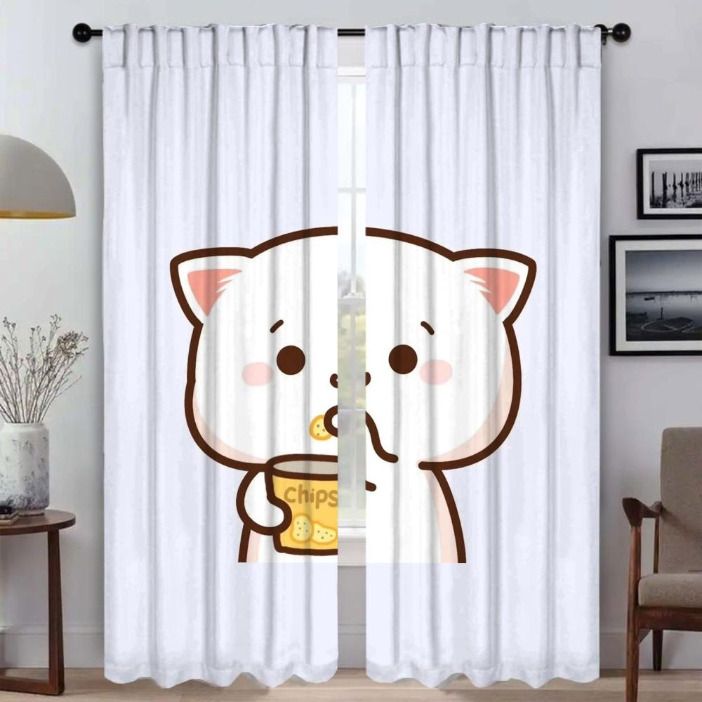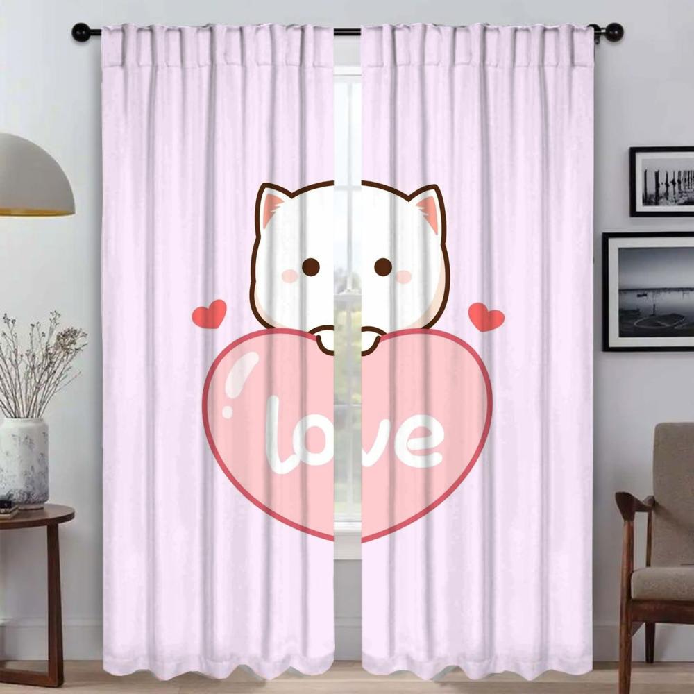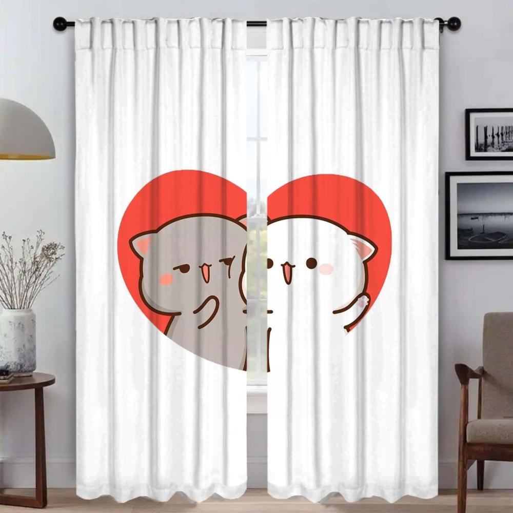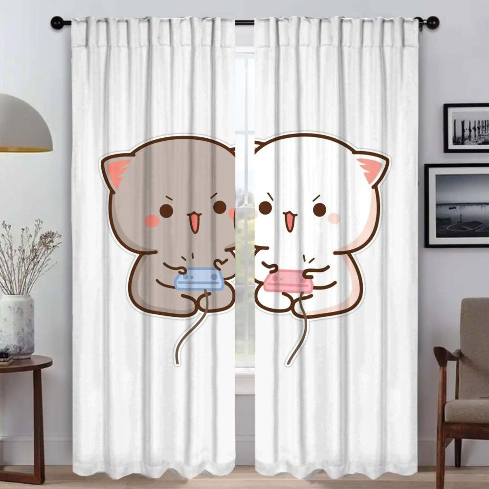 Персиковые Моти Кот Кухонные Занавески 2 Штуки Затемняющая Штора для Комнаты 2 Панели Шторы Тюль для Спальни Домашние Интерьерные Занавески
