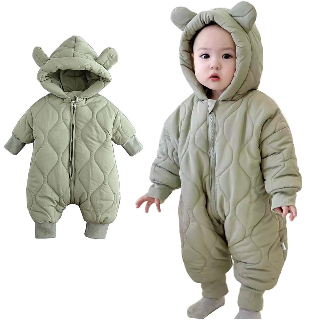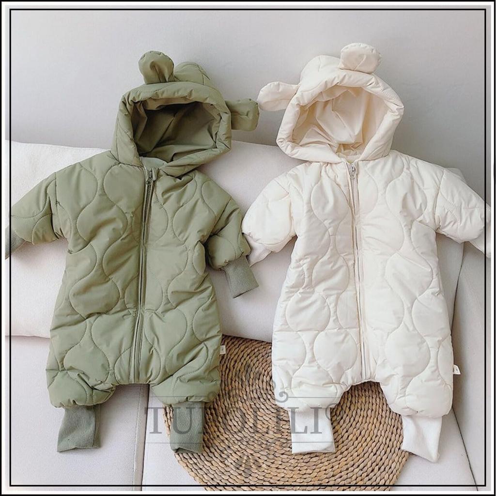 Детский комбинезон-конверт TUPOLILI с медвежьими ушками, на подкладке и верхняя одежда, длинный, идеально подходит для снежной холодной погоды, пуховый, теплый и уютный, с капюшоном, на флисовой подкладке