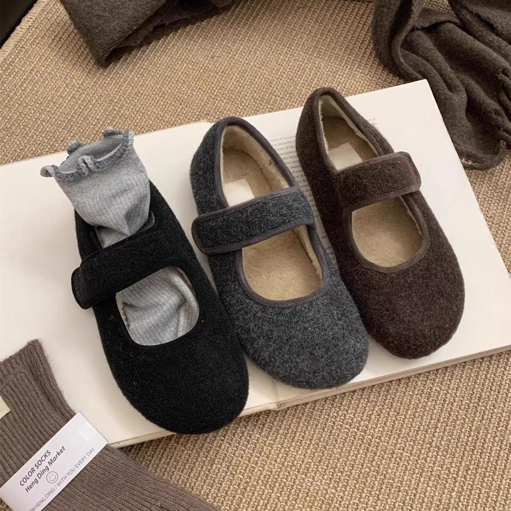 Серый~ очень нежный и продвинутый! Мохнатые туфли женские теплые осенне-зимние плоские туфли Мэри Джейн из бархата и хлопка