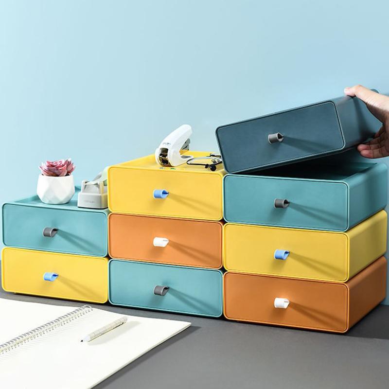 Настольный штабелируемый органайзер-ящик Офисные аксессуары Цветной ящик для хранения Косметика Пластиковый контейнер для хранения Хранение в ванной 1 шт.