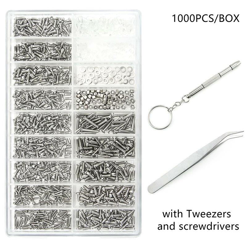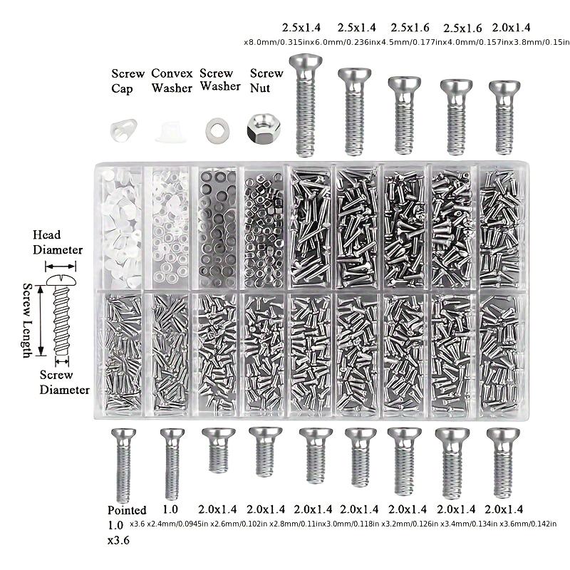 Превосходный набор винтов для ремонта очков 18-в-1 | Прецизионные носоупоры, распорные втулки и винты для безободковых оправ для регулировки и обслуживания очков