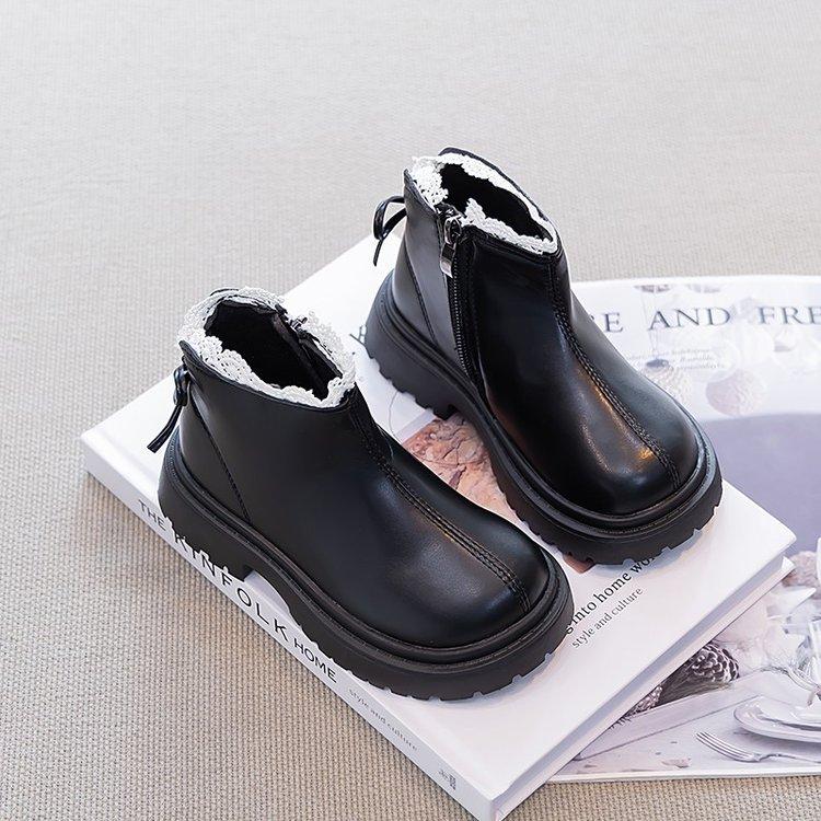 Детские ботинки мартинсы для девочек, короткие ботинки 2025, новые весенне-осенние флисовые ботинки, ботинки в иностранном стиле, кожаные ботинки для мальчиков, детские ботинки