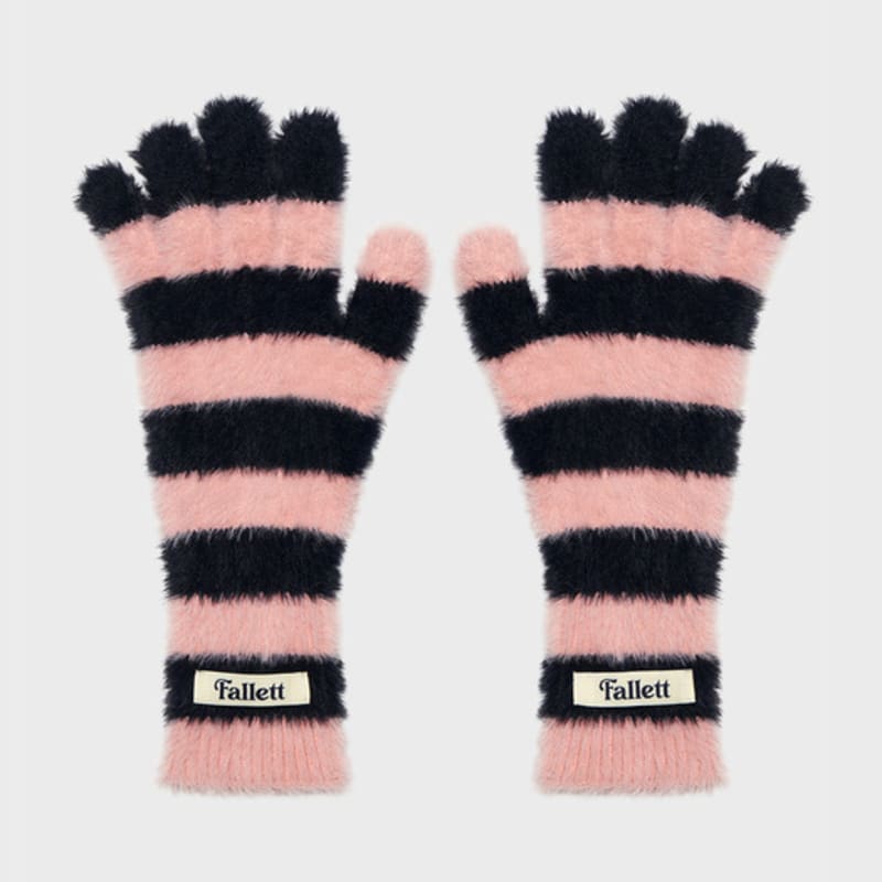 FALLETT Вязаные перчатки с прорезями для пальцев в полоску розового цвета — купить товар онлайн с бесплатной доставкой по всему миру!