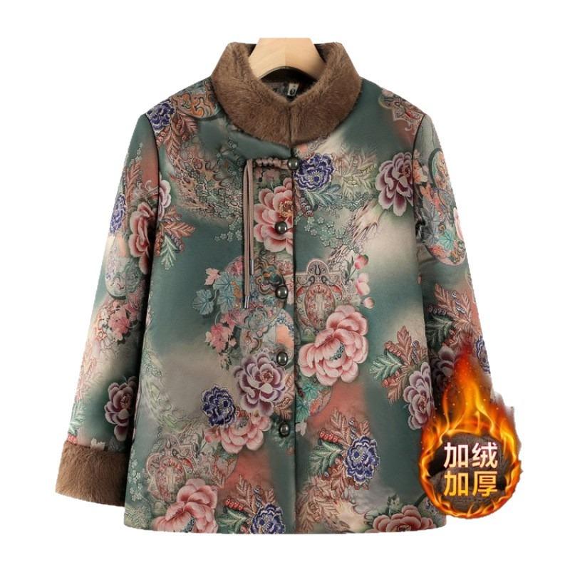 Пожилая хлопковая одежда Утолщенная зимняя хлопковая одежда Флисовая куртка Одежда Тан Теплая хлопковая куртка для пожилой женщины верхняя одежда
