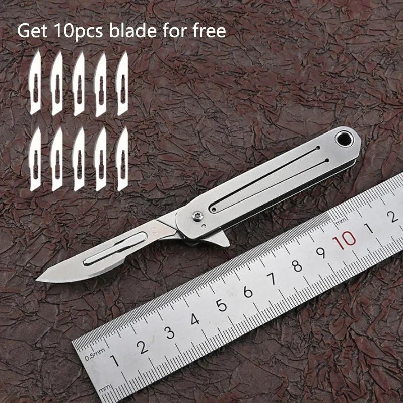 Stainless steel Scalpel Fast Open Medical Folding Mini Knife EDC Outdoor Unpacking Pocket Knife With 10pcs Replaceable Blades