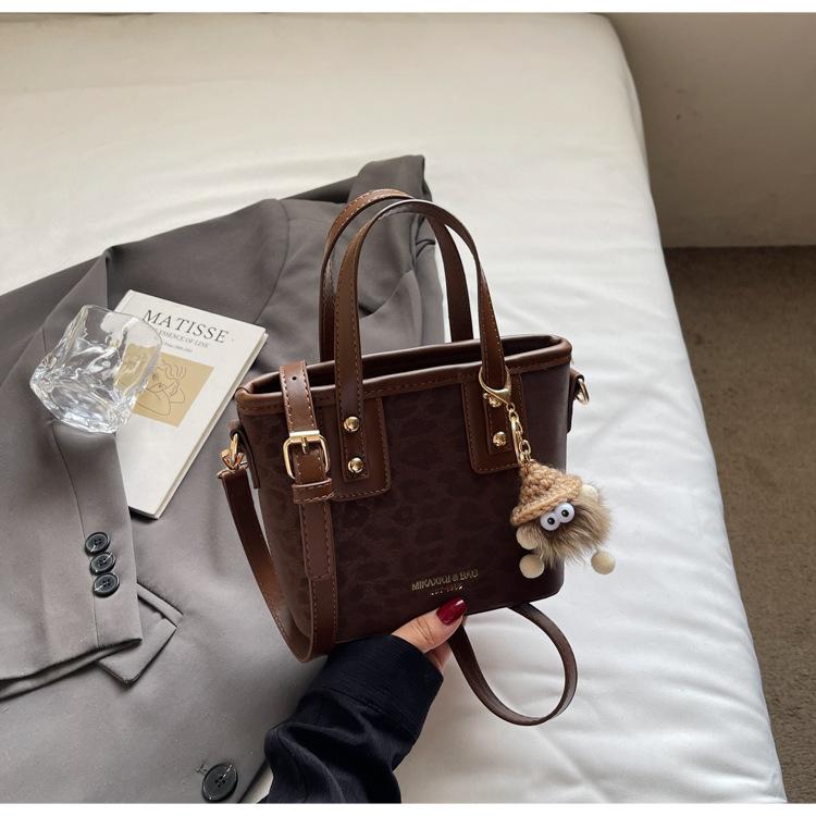 Нишевый дизайн сумка с леопардовым принтом женская 2025 новая мода ретро портативная сумка-ведро зарубежный стиль сумка через плечо мессенджер тренд