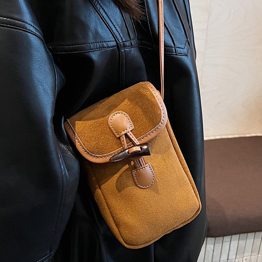 Сумка для мобильного телефона с угловой пряжкой 2025 новая модная популярная маленькая квадратная сумка мини ретро плюшевая контрастного цвета на плечо/кроссбоди