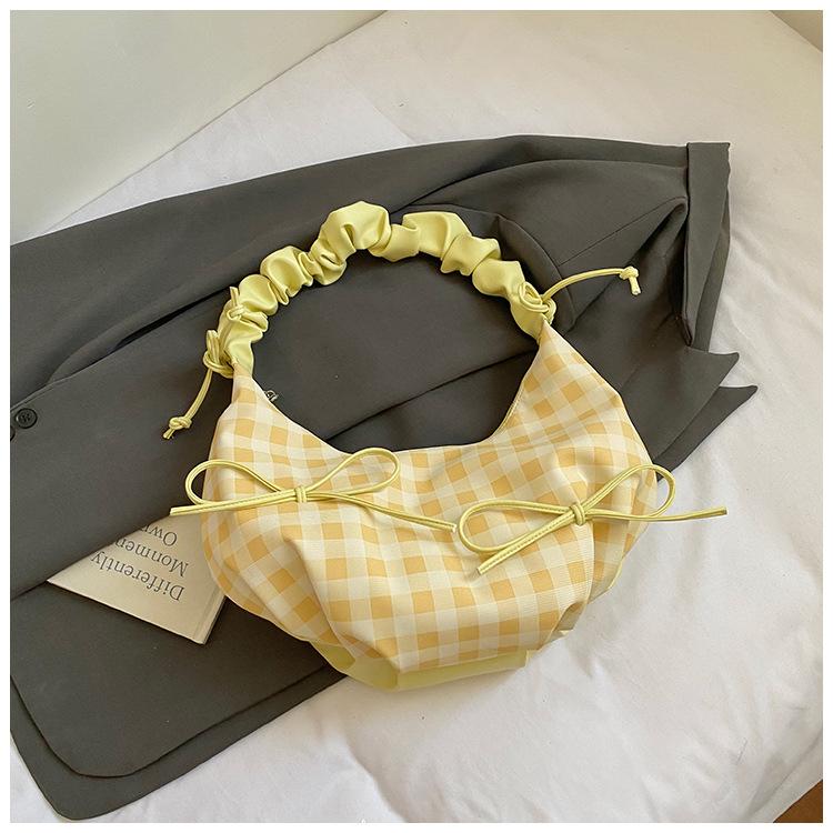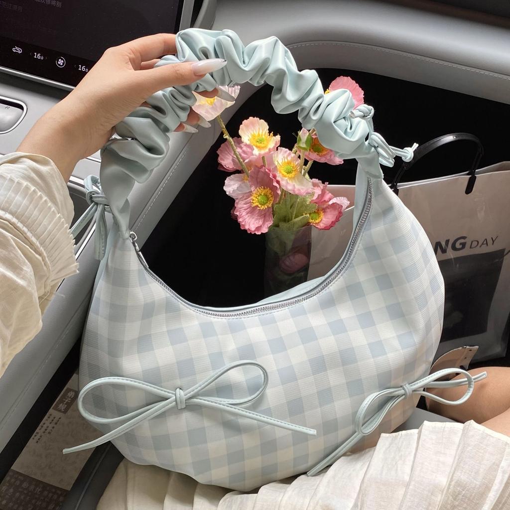 Корейская версия сумка-бант с плиссировкой новая сумка через плечо в иностранном стиле клетчатая сумка-мессенджер для通勤 повседневная сумка-полумесяц тренд