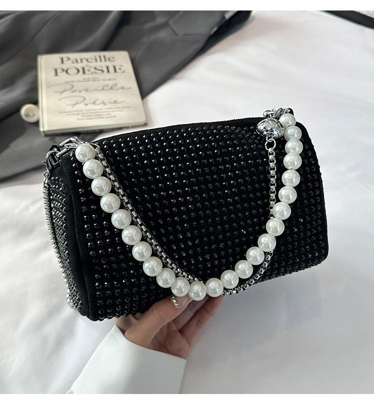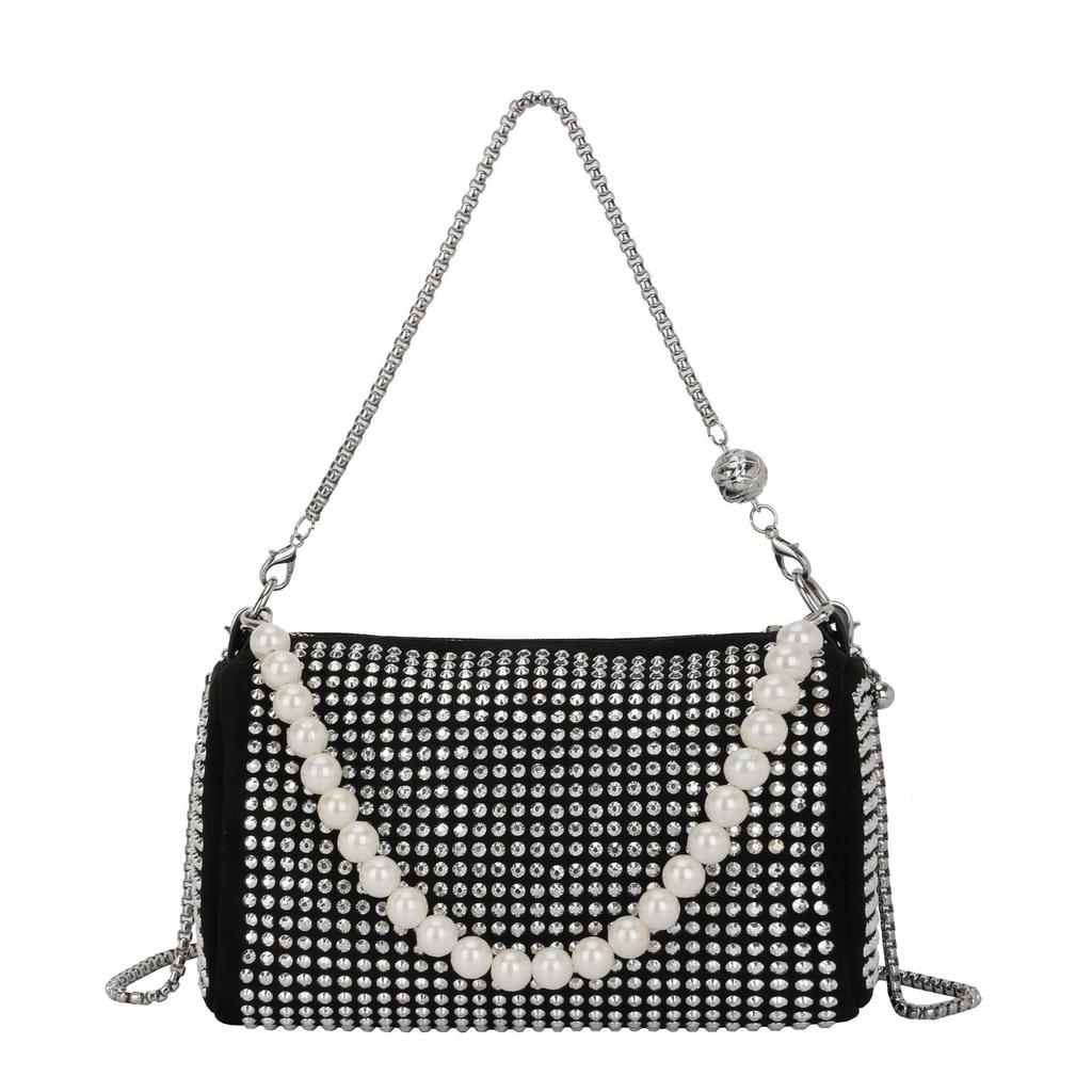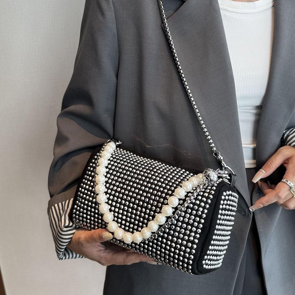 2025 новый тренд модная сумочка зарубежный стиль стразы подмышечная маленькая квадратная сумка жемчужная цепочка плечевая сумка кроссбоди женская