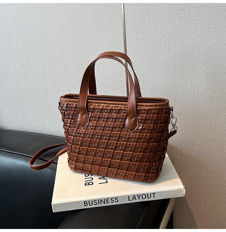 Ретро плетеная маленькая сумка женская 2025 новая нишевая дизайнерская портативная сумка-ведро сумка-мессенджер на плечо для поездок на работу
