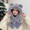 Теплая универсальная шапка с медвежьими ушками и шарфом, женская зимняя ветрозащитная плюшевая утолщенная плюшевая шапка-шарф