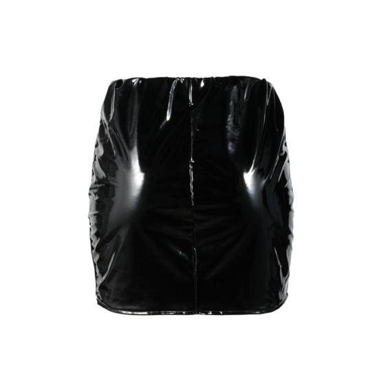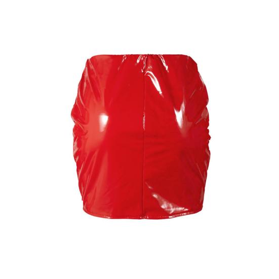 Элегантность искусственной кожи: Насладитесь роскошным ощущением от ткани из искусственной кожи, которая придает этой юбке блестящую поверхность и легкую эластичность, обеспечивая комфорт и стиль.