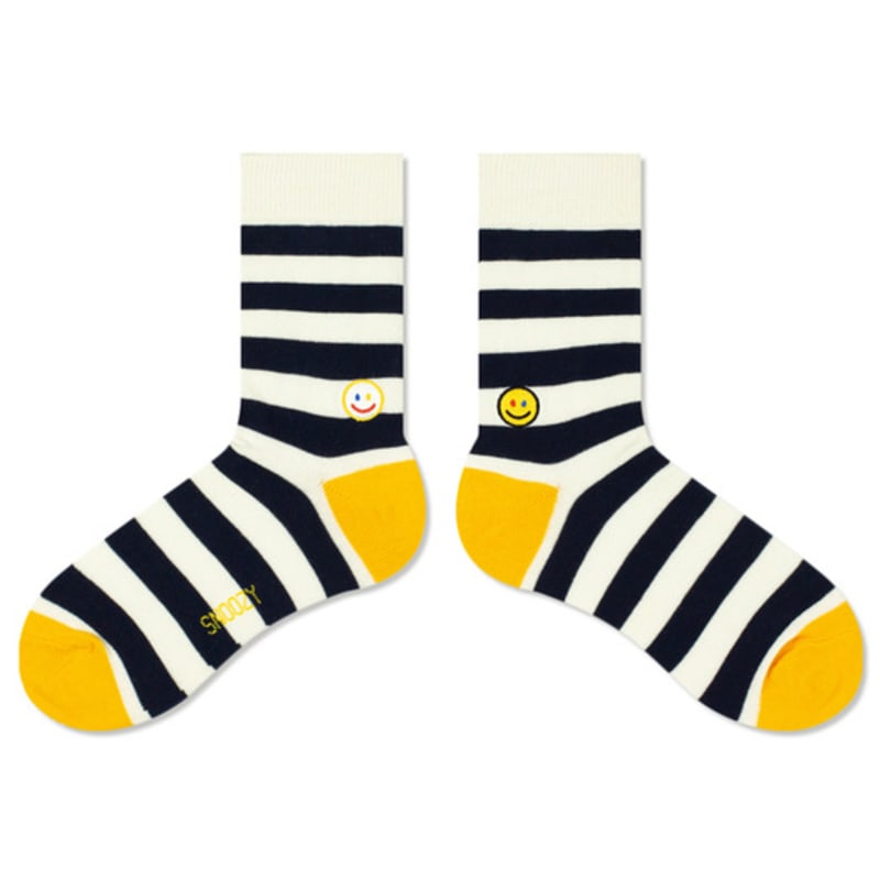 SNOOZY Полосатые носки с вышивкой в виде смайлика 3 эмодзи (Темно-синий Y)