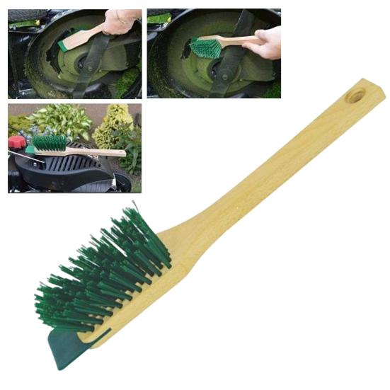 Удобный дизайн: Эта щетка, отличающаяся эргономичным дизайном для удобного захвата, обеспечивает легкое маневрирование для эффективной очистки даже самых труднодоступных мест вашей газонокосилки.