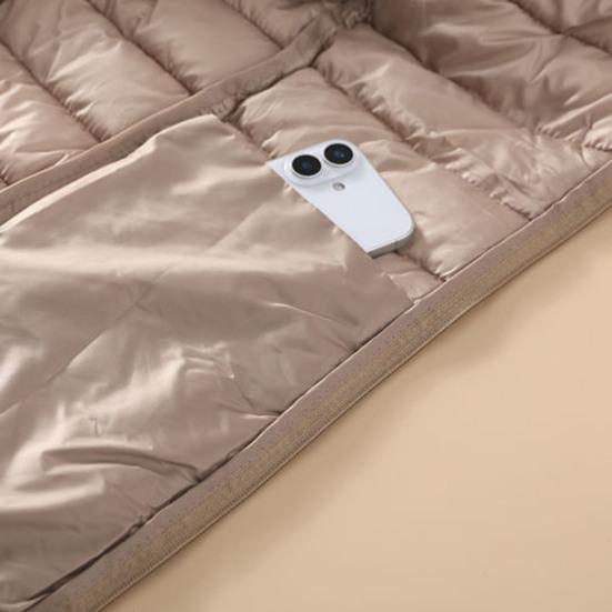 Оставайтесь в тепле и стильными в этом женском пуховом жилете из мягкого и дышащего полиэстера. Этот жилет с потайными карманами на молнии с обеих сторон практичен и моден. Уникальный дизайн включает воротник-стойку, застежку-молнию и легкий стиль, который можно носить как куртку или внутренний слой..