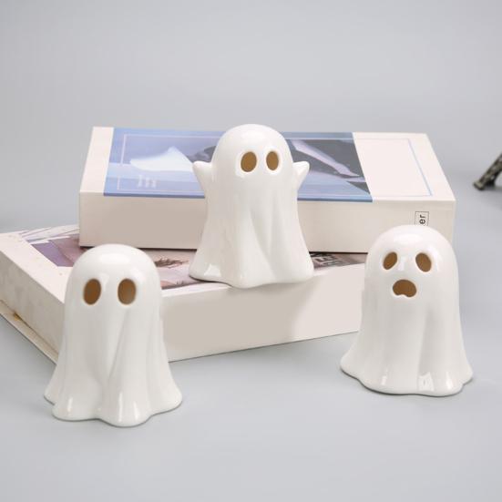 Универсальный декор для различных помещений: Подходящие для размещения в гостиных, спальнях или прихожих, эти керамические украшения в виде привидений также могут служить креативными подсвечниками, предлагая уникальное и оригинальное дополнение к вашему Хэллоуинскому оформлению.