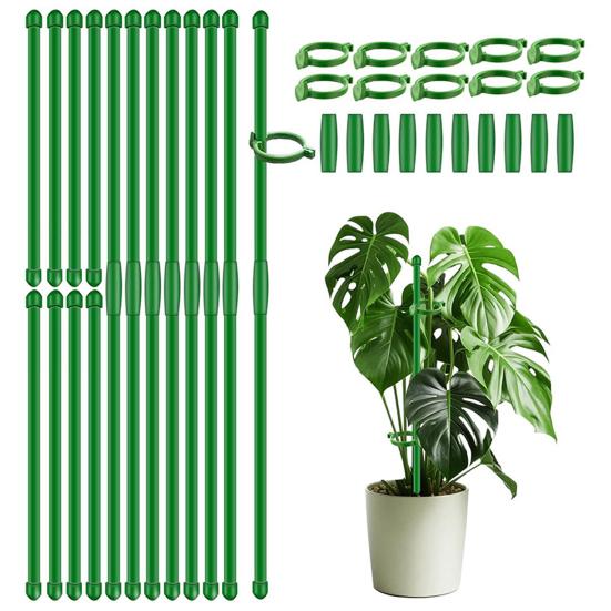 Универсальное использование для всех растений: Идеальные как для внутреннего, так и для наружного использования, эти зеленые палочки для поддержки вьющихся растений с клипсами идеально подходят для широкого спектра растений, включая помидоры, орхидеи, фасоль, розы, хризантемы, лилии, подсолнухи, тюльпаны, монстеру и другие горшечные или садовые растения.